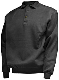 Sweatshirt med stolpe og krave, Dobbelt sømme og forstærkning i nakken. Dobbelt jersey strikket. Lycra i alle ribber.