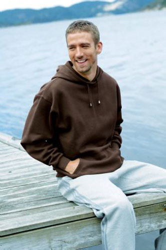 Dobbelt jersey kvalitet, børstet inderside, forstærkede søm og lycra i rib. Snøring i hals og kængurulomme.