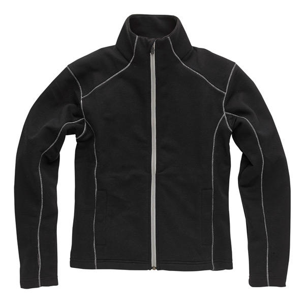 Cardigan med kontraststikninger på ærmer, skuldre og ned langs siderne. Gennemgående lynlås samt stiklommer med skjult trykknap-lukning. Lækker blød kvalitet med ubørstet inderside. Let figursyet.